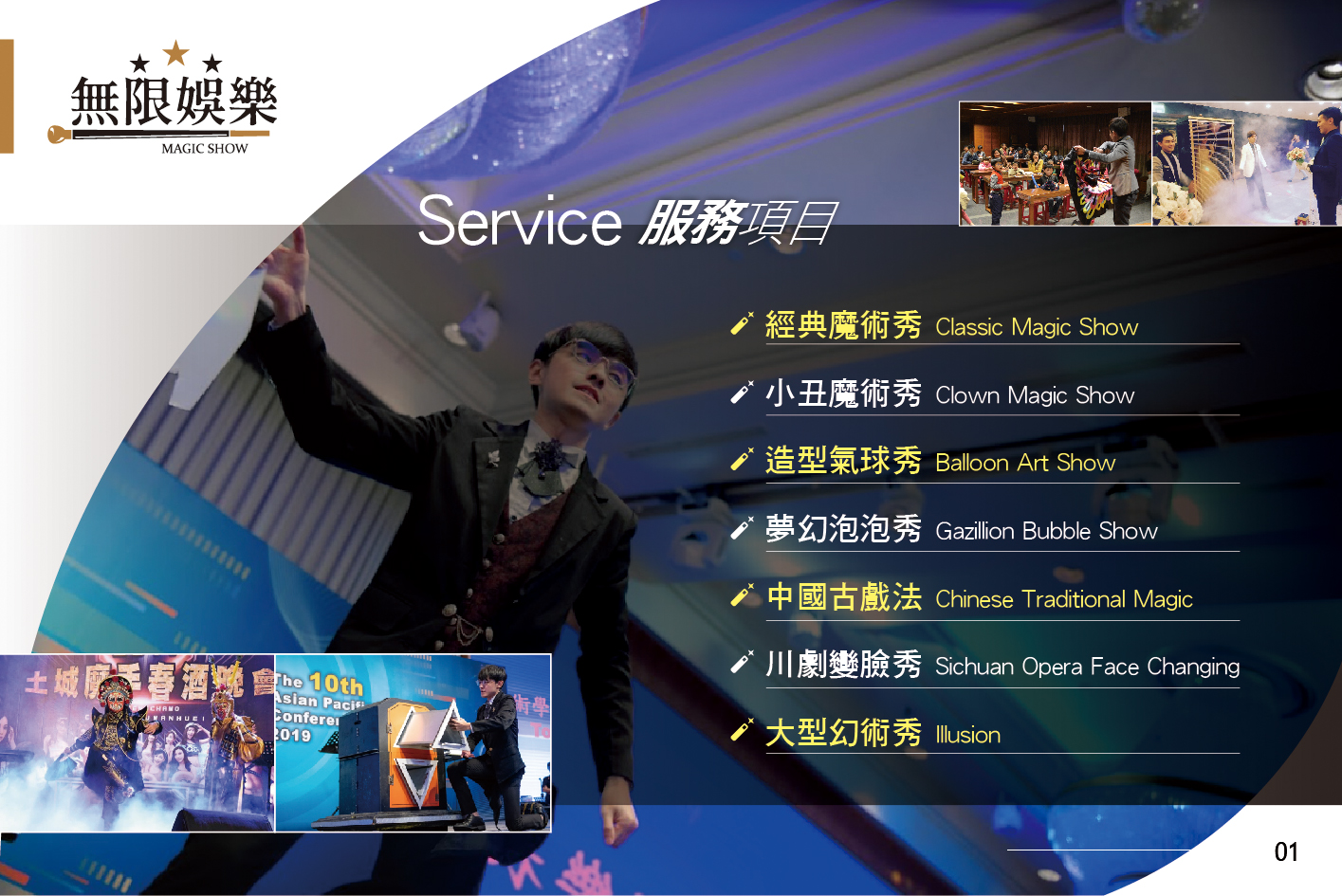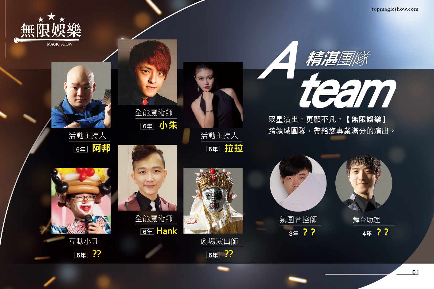一場精彩魔術表演除了演出魔術師要優秀外,還需要搭配好的助理及音控人員,甚至需要主持人協助,才可以完美演出把最好效果帶給大家!
